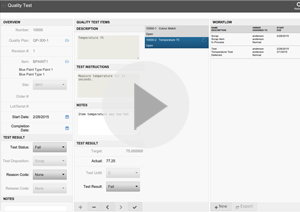 • Quality Test Dispositions — define the current status of the Quality Test and the item being tested, and whether the item is in testing, released for further use, or has failed a test and requires the user to scrap, quarantine or rework the item; appropriate notifications of non-compliance are automatically routed to key stakeholders